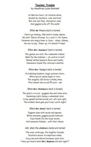 Fabulous to see so many entries for our Festival of Speech & Drama this term. Of particular note were the really well executed Monologues by S4. There was a very high standard and it was lovely to see this continued for the whole class poetry event on Friday afternoon. Below is the winning poem from S4 for the Original Verse category.